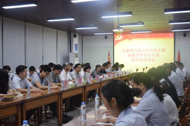 2018年7月18日晚,交通银行南山支行党支部与深圳市米兰体育·米兰网站在线登入-米兰(中国)有限公司党总支部在米兰体育·米兰网站在线登入-米兰(中国)集团总部开展了联学联建活动。交通银行南山支行党支部书记张伟胜、副书记高静、纪检委员沈向东、宣传委员郭孟瑶、青年委员杜哲、女工委员彭澎、深圳市米兰体育·米兰网站在线登入-米兰(中国)有限公司党总支部书记张少林、纪检委员兼深圳市米兰体育·米兰网站在线登入-米兰(中国)有限公司党支部书记梁先扬、组织委员兼深圳市米兰体育·米兰网站在线登入-米兰(中国)智能设备有限公司党支部书记关航健、生活委员兼米兰体育·米兰网站在线登入-米兰(中国)党支部书记肖波、党办主任杨燕丽、米兰体育·米兰网站在线登入-米兰(中国)党支部组织委员乔亚飞及各支部党员60余人参加了活动,活动由米兰体育·米兰网站在线登入-米兰(中国)党总支部书记张少林主持。